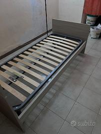 Letto singolo con spalliera e giro letto in legno. Fornito di rete a doghe con piedini. Praticamente nuovo. Vende perché ordinato per sbaglio, mi occorreva il letto i piazza e mezza. Ritiro a domicilio.