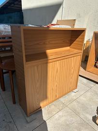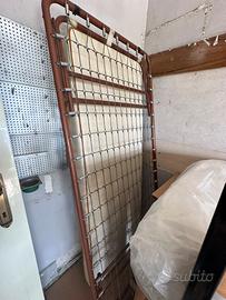 Il letto ha una ‘cornice’ in legno con ripiani oltre a testiera con contenitore, come da foto.