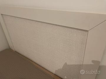Letto singolo con testiera in legno biaco e rattan e rivestimento in tessuto écru Materasso compreso. Misure 90x200