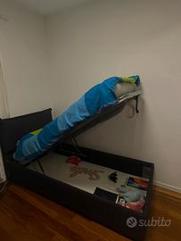 Letto contenitore ikea a una piazza. Comprende anche federa e materasso. La federa è in buone condizioni, ma ha una macchia da un vecchio gioco dietro alla testiera del letto, come si può vedere dalle foto, non si nota da davanti.