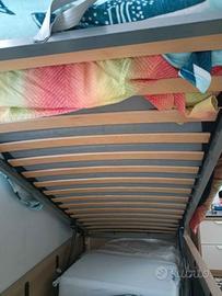 Letto Singolo con Contenitore: Struttura robusta con rete a doghe sollevabile (meccanismo a pistoni) che offre un ampio spazio contenitore sottostante, ideale per valigie o coperte. Larghezza 102 cm, lunghezza 220 cm, altezza 34 cm, ovviamente dove presente la testiera è più alto.
