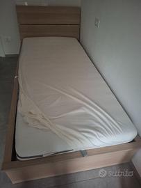 VENFO LETTO SINGOLO IN LEGNO CHIARO CONTENITORE CON RETE IN DOGHE IN LEGNO E MATERASSO, IN OTTIME CONDIZIONI, UTILIZZATO POCO, VENDO PER CAMBIO ARREDAMENTO. TUTTO MARCA IKEA
