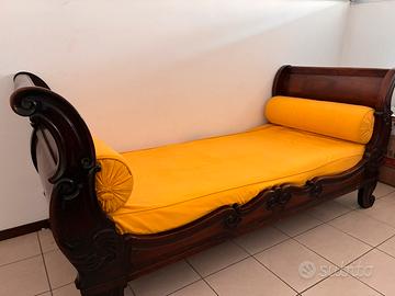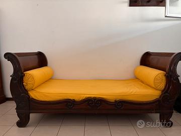 Letto d’epoca in ottime condizioni con rete e materasso completo di cuscini foderati color giallo ocra. Ottima occasione . Ritiro a carico e spese dell ‘acquirente presso appartamento sito in Nervi (GE). Possibilità ingresso mezzi per carico e scarico