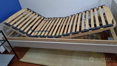 Letto singolo di mobilificio con rete a doghe regolabili con alzata testa e piedi. Non è elettrico.