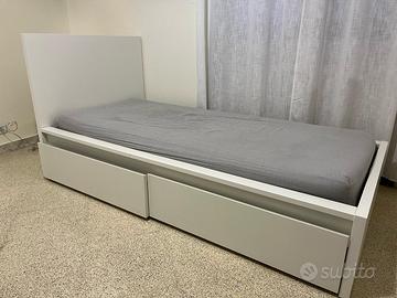 Struttura letto IKEA collezione MALM, con 2 contenitori, bianco, 120x200 cm. Compreso di: Base a doghe IKEA collezione LURÖY, 120x200 cm e Materasso a molle insacchettate IKEA collezione VALEVÅG, 90x200 cm.