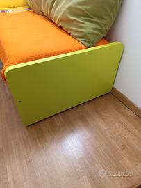 Vendo letto singolo Doimo City Line mod. Giotto (larghezza 90cm) con rete a doghe, testiera e pediera in legno col. verde acido, completo di materasso dim. 80x190 "Altre Notti" anti allergico, completamente sfoderabile, con topper ad effetto memory, in ottime condizioni (già smontato)