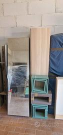 Vendo letto singolo con cassetti, compreso materasso. Una scarpiera con specchio 180x50, una colonna bagno 192x40, 2 mensole da 160 e 3 set di mensole rettangolari.