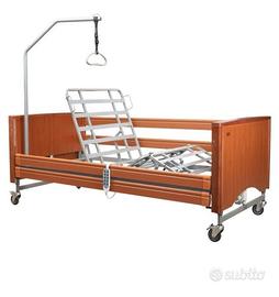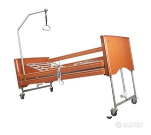letto singolo elettrico con 4 ruote dotate di freni che facilitano il suo spostamento. Pratico telecomando che permette di regolare l'altezza della rete, la struttura può essere inclinata. Dotato di asta per sollevarsi e sponde movibili. Usato pochissimo. Ritiro a carico dell'acquirente