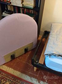 Letto singolo con rete e materasso. Ha la testata fatta da un tappezziere su misura, che si può mettere e levare facilmente, ad incastro. E' un bel letto, comodo e poco usato. Misura 200x90.