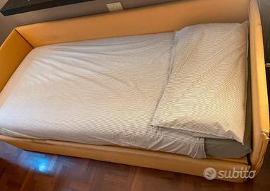 Letto singolo GAB con letto sotto estraibile, modello sommier con struttura imbottita (totale 2 materassi inclusi).