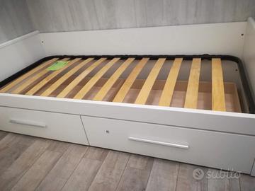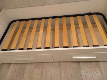 Letto singolo colore bianco con doghe in legno 2 cassetti contenitori. Fabbricato da GiEsseGi. Tenuto perfettamente. Tutto in legno. Facile da spostare perché dotato di rotelle.