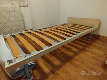 vendita letto singolo, rete doghe in legno, testiera aggiuntiva arancione in legno, materasso flexilinea, dimensioni 190×90 x 19 cm in ottime condizioni , già smontato , solo consegna a mano ( formula visto e piaciuto), vendo anche solo il materasso separatamente. ( prezzo trattabile)
