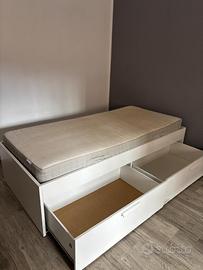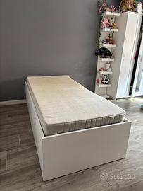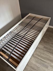 Vendesi letto singolo IKEA bianco, modello con ampi cassetti contenitori, completo di doghe e materasso. Il letto è in ottime condizioni, perfettamente integro e senza alcun segno di rottura o difetto funzionale. • Caratteristiche: • Struttura robusta con 2 ampi cassetti salvaspazio. • Incluso materasso pulito e in buono stato. • Inclusa rete a doghe flessibili. • Stato: Usato con cura, niente parti rotte o mancanti. Il prezzo è molto trattabile. Valuto offerte ragionevoli per chiusura rapida. Ritiro a carico dell’acquirente