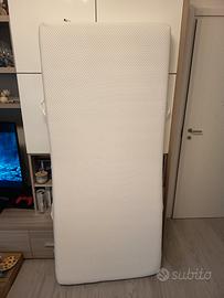 Letto Ikea Slattum 90x200 cm con testiera imbottita e rivestimento grigio. Rete in doghe in legno. Disponibile anche con Materasso Ikea ABYGDA 90x200cm per un totale di 120€. (materasso venduto separatamente a 75€).
