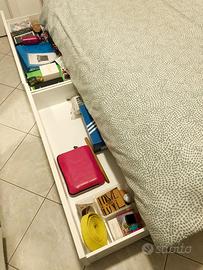 Letto singolo Ikea modello MALM con contenitori color bianco 90x200 cm, compreso di doghe e se volete anche il materasso modello VALEVÅG, è un pò macchiato ma può ancora essere utile. Compresi nel prezzo anche il piumino e copripiumino della foto e federa cuscino in tinta (no cuscino). il letto sarà disponibile da sabato 25 aprile. Smontaggio e trasporto a vostra cura.