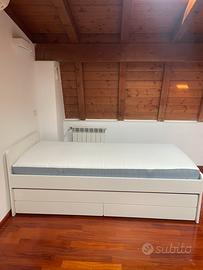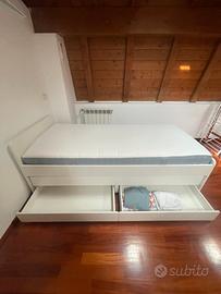 Vendo struttura letto singolo compreso di materassi, apribile con letto a scomparsa e due cassetti . Il Letto ha un anno ed e in perfette consizioni come i due materassi.