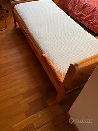 Bellissimo e robusto letto singolo in pino, ideale per cameretta. Misure 210 x 88 x h85 (spalliera) Incluso materasso e rete. Ritiro a carico dell’acquirente comune di Narni (TR) No spedizione