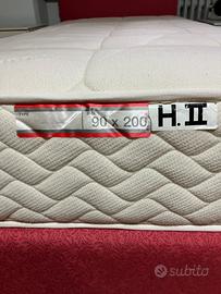 Letto singolo imbottito in tessuto color rosa cardinale con contenitore, rete a doghe, prodotto dall'azienda Oggioni completo di materasso 90 × 2 m sfoderabile,