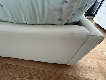 Vendo, anche singolarmente, 2 letti in ecopelle, imbottiti. Qualche graffio sul rivestimento come da foto. Trasporto a carico dell’acquirente. € 99,00 cad.