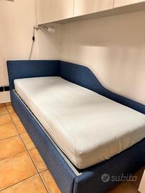 letto singolo in perfette condizioni modello Joy della v-nice colore blu con possibilità di collocare nella parte sottostante la rete a doghe quattro contenitori (compreso eventualmente anche materasso memory foam 90x200 sfoderabile e lavabile)