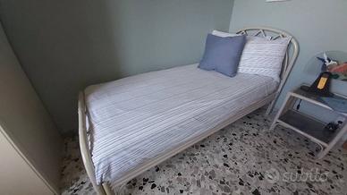 Letto singolo in bambù color beige, rete con doghe, volendo matesso a molle insaccate e comodino, COME NUOVO. Vendo causa trasferimento. Solo ritiro. 200 euro.