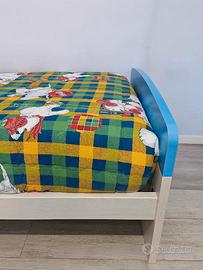 Letto singolo in betulla colore panna e avio con doghe in legno lunghezza cm 200 profondità cm 94 NO MATERASSO