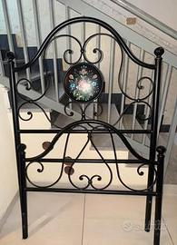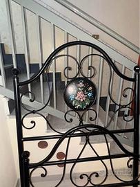 Vendo letto singolo in ferro battuto con decoro floreale dipinto a mano, completo di rete a doghe (NO materasso).