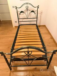 Letto singolo in ferro battuto più materasso