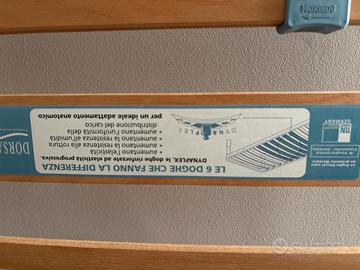Vendo letto in ferro battuto con doghe in legno Dorsal, completo di materasso Ortopedico Flexlana Mis 90 x 190 Pomoli in legno con ricambi neri. Uno va sistemato. Per il resto è come nuovo, usato pochissimo