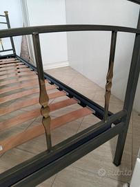 Bellissimo letto singolo in ferro, con doghe in legno. mai usato, come nuovo. già smontato. MISURE: Spalliera h90x87 Lunghezza rete 196 Lunghezza tot 203 Spazio da terra 27