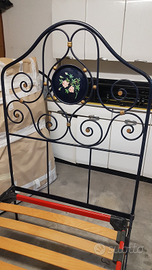 Per cambio arredamento vendo struttura Letto singolo in ferro pieno colore blu scuro. Con disegno sul rosone fatto a mano. Misure standard. Senza materasso.