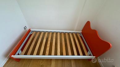 Vendo letto singolo in legno, colore arancione e bianco, usato ma ben tenuto.