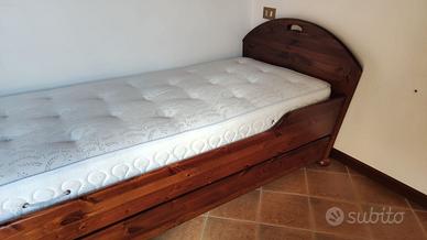 Letto singolo in legno con secondo letto estraibile dim. 90x200 . Ritiro gratuito dell'oggetto in zona.