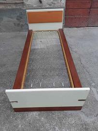 Letto singolo in legno e rete in metallo