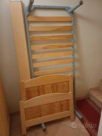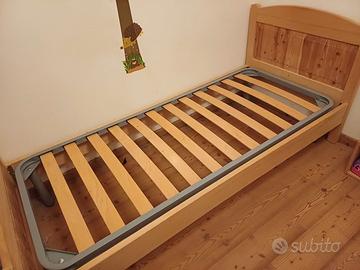 Letto singolo in legno massiccio (abete/larice) con rete a doghe, e materasso.