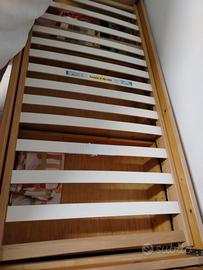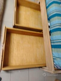 Vendo letto singolo in legno massiccio, fatto fare da un artigiano. Da sistemare una scina di uno dei tre comodissimi cassettoni. Disponibile materasso in ottime condizioni e cuscini