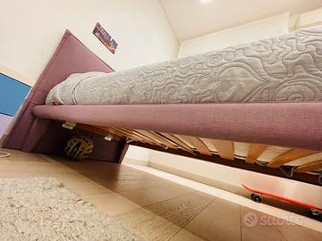 Vendo letto singolo in tessuto 90x190 colore rosa/lilla marca Ergogreen in ottime condizioni. Comodino in regalo. Ritiro a Bologna in zona Stadio o a Zola Predosa.