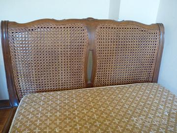 letto singolo (utilizzabile anche come divano) in legno di noce con inserti in paglia di Vienna in ottimo stato. viene venduto senza materasso e senza rete. non è smontabile e non viene spedito.
