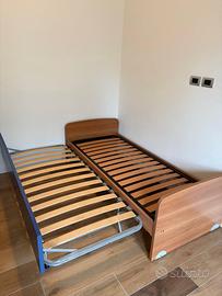 Letto singolo con secondo letto singolo estraibile. In buone condizioni, anche se con un pezzo della struttura rotto (e riparato) come mostrato in foto. Doghe in ottimo stato. In vendita anche i due materassi (nel caso in cui foste interessati solo alla struttura il prezzo sarebbe di 90 euro).