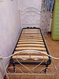 Letto singolo in ferro battuto a forma di cuore, completo di rete ortopedica e materasso eminflex memory a 5 zone 80 per 190.