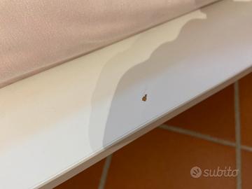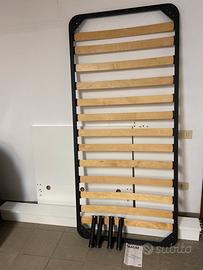 Letto Singolo tenuto molto bene, completo di Rete a doghe con gambe indipendenti (non Ikea) e materasso da 15/16 cm. Piccola ammaccatura cone da foto. Adesso è già smontato, in attesa di vendita.