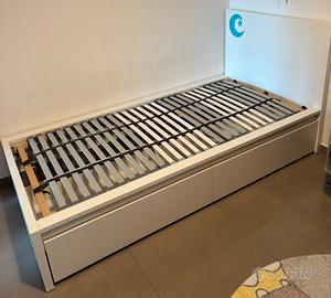 Vendo letto singolo ikea MALM con doghe LONSET e due cassettoni, del valore commerciale attuale di 239€, senza materasso. Misure 90x200 cm (e comunque come da foto presa sul sito Ikea). Letto in ottimo stato, cassetti rinforzati. Alcuni aloni di adesivi sulla testiera.