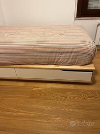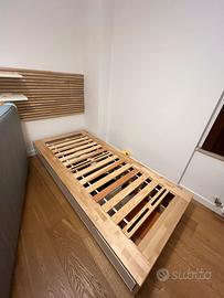 Vendo letto singolo MANDAL ikea, SENZA MATERASSO. C’è anche la testiera in legno, creata da un pezzo singolo di ikea diviso a metà, con due mensole che possono essere disposte a piacimento.