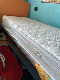 Letto singolo misure 180x80 con doghe e ruote e materasso in ottimo stato. chi lo acquista se lo deve smontare.
