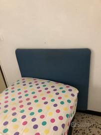 Letto singolo 1,90x0,80 con rete con doghe e testiera a muro.