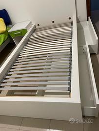 Vendo letto singolo dal design moderno e pulito, colore bianco opaco, in ottime condizioni generali. La struttura è solida e perfetta per una camera da letto o una stanza dei ragazzi.