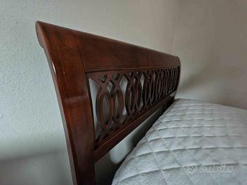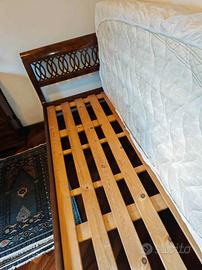 Bellissimo letto singolo realizzato interamente in legno massello. Il design è caratterizzato da linee classiche ed eleganti, con una testata e una pediera finemente lavorate con un motivo a intreccio che dona un tocco di artigianalità e calore alla camera da letto. La struttura è solida e presenta una splendida finitura naturale che mette in risalto le venature del legno. Incluso nell'offerta è presente un materasso in lattice di alta qualità. Il materasso è dotato di una fodera trapuntata bianca, pulita e ben tenuta. prezzo non trattabile