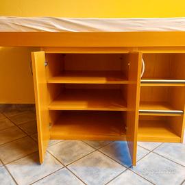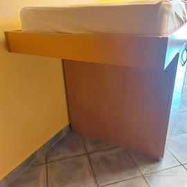 Letto singolo comprensivo di materasso 90×190 cm, in struttura costituita da piccolo armadio e 6 ripiani a vista.