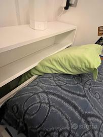 Per rinnovo arredi si vende letto singolo acquistato da mobiliere, in ottime condizioni, con materasso igienizzato e testata contenitore. Misure 90x225 altezza testata 84