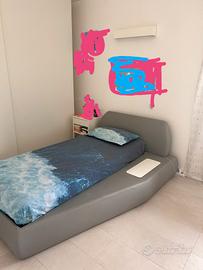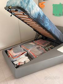 Letto una piazza, cm 90 x 200, marca TOMASELLA, modello Rock con contenitore e comodino incorporato, in ecopelle grigio, rete incorporata.